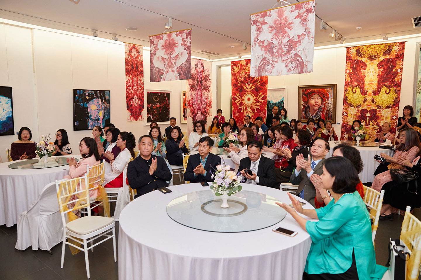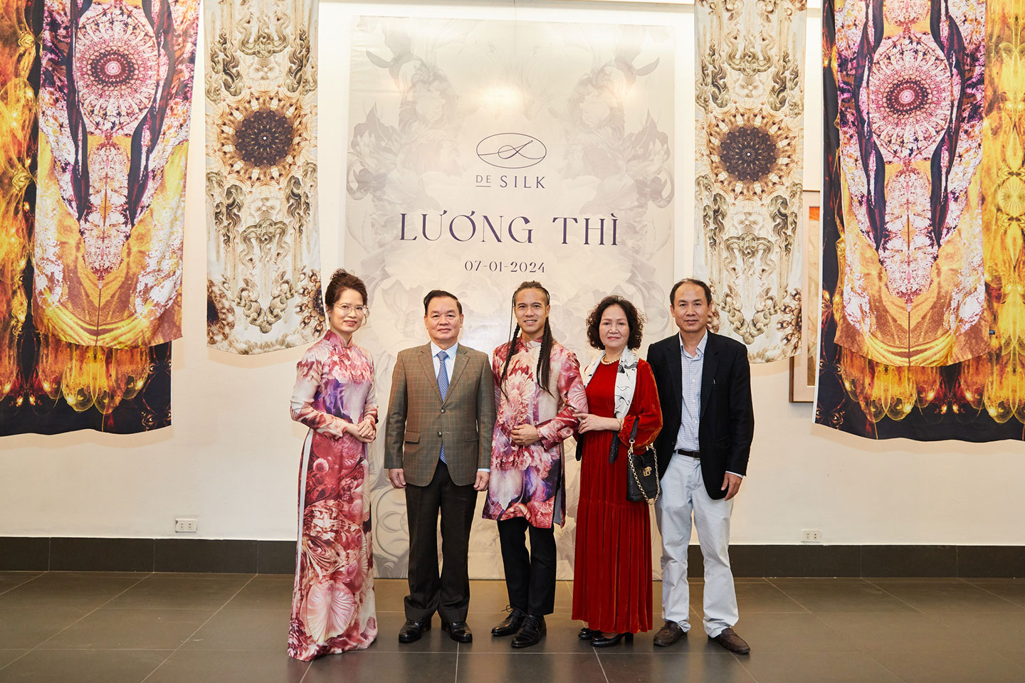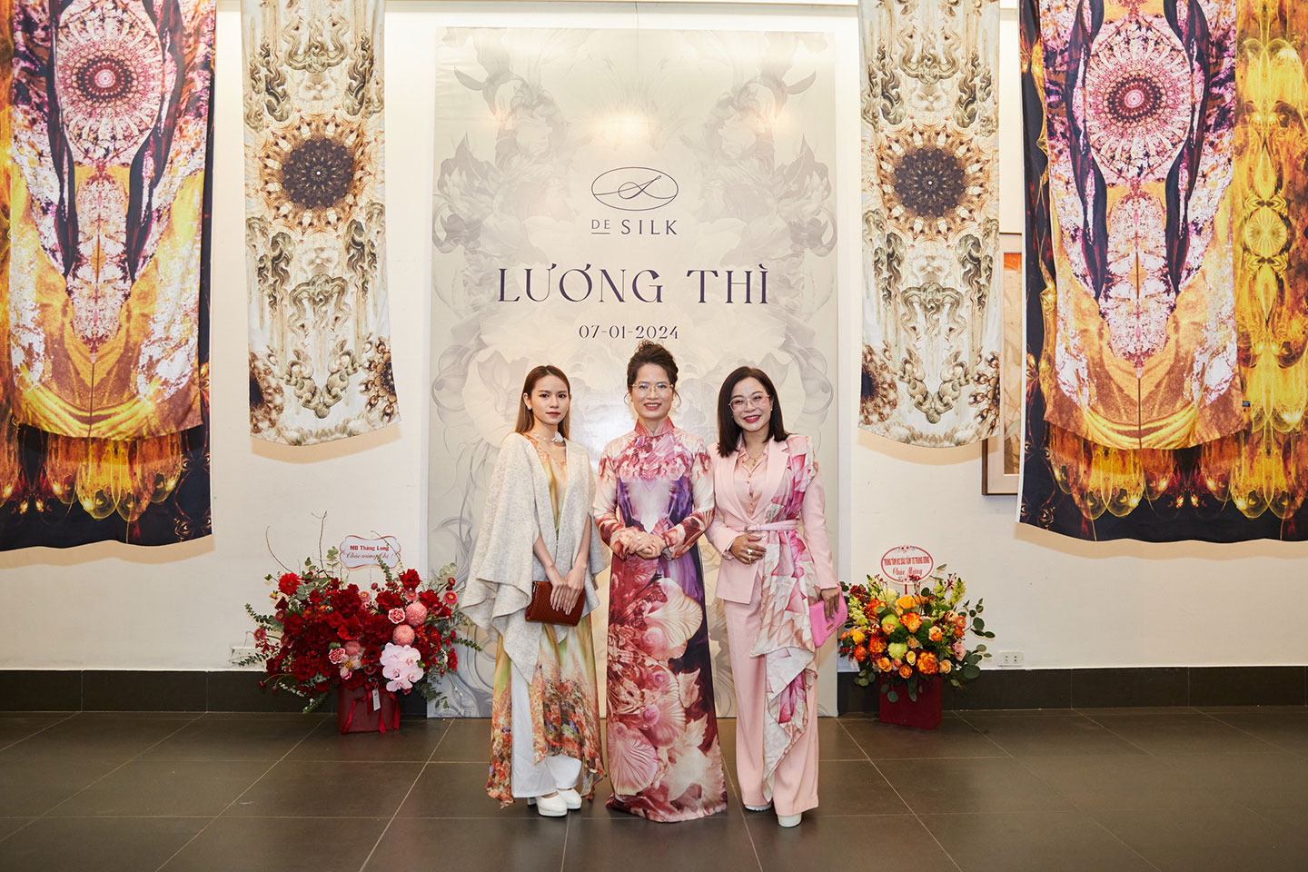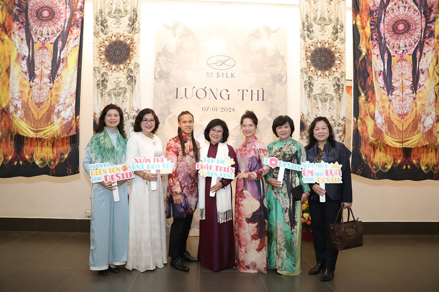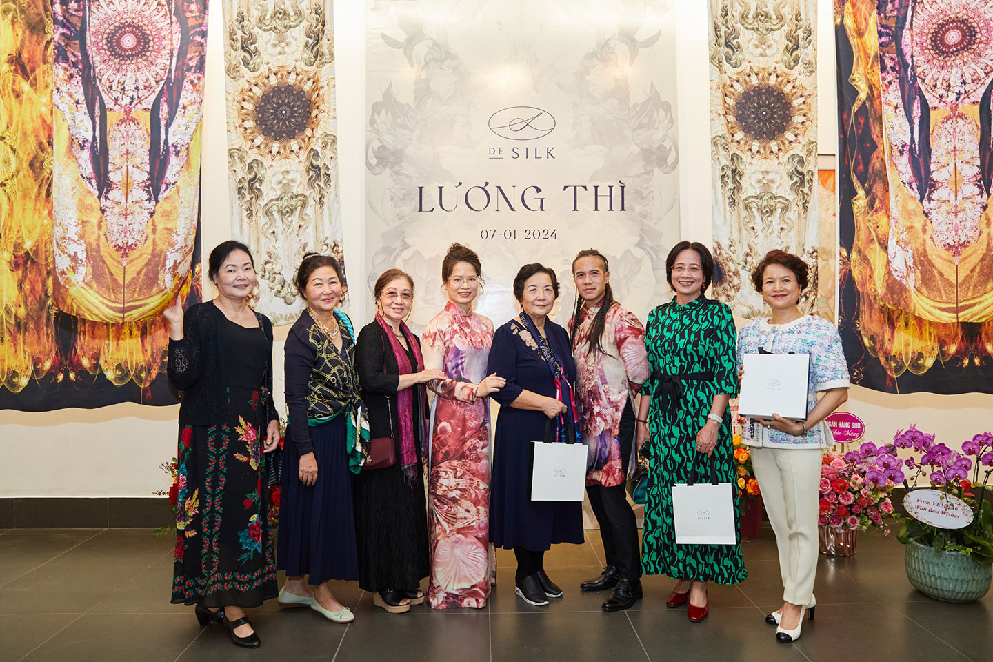 Các vị khách chụp ảnh kỷ niệm tại sự kiện, đánh dấu 5 năm thành lập thương hiệu lụa tơ tằm cao cấp DeSilk