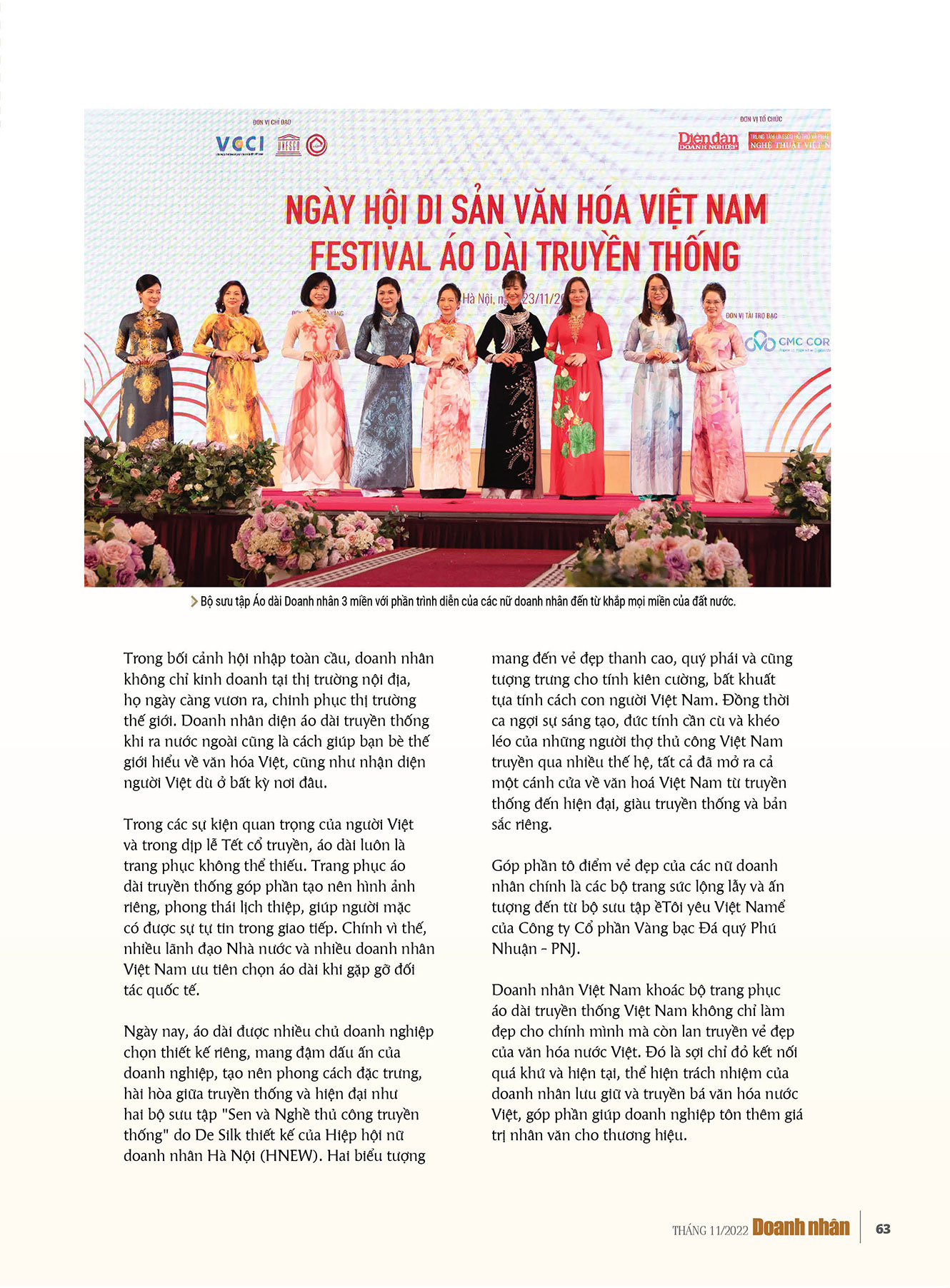 Doanh nhân nữ Việt Nam khi mặc áo dài truyền thống sẽ lan tỏa vẻ đẹp của văn hóa nước Việt và điều đó thể hiện trách nhiệm của doanh nhân trong việc lưu giữ và truyền bá văn hóa đất nước.